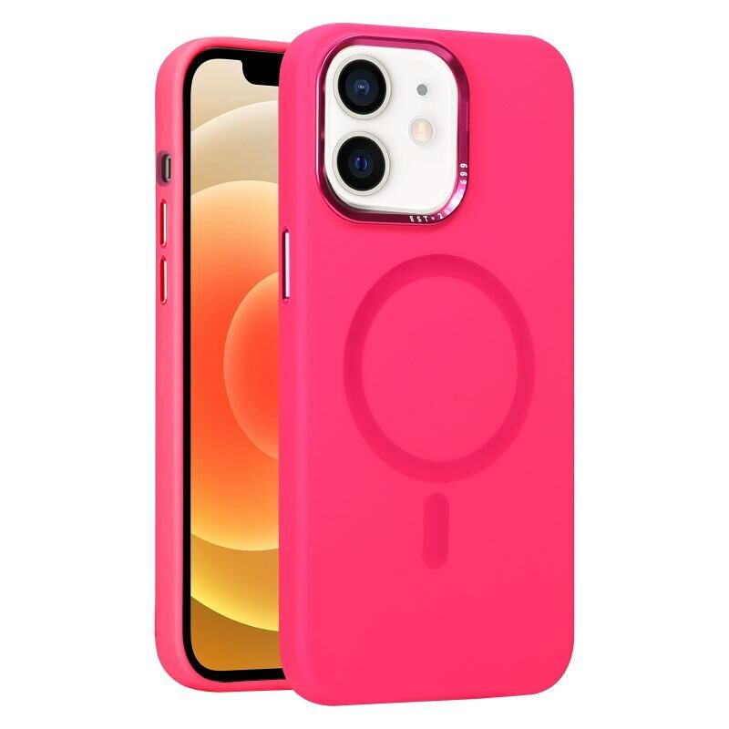 Θήκη τηλεφώνου για iPhone 12 με μεταλλική στεφάνη φακού, υγρή σιλικόνη και MagSafe (Μαύρο)