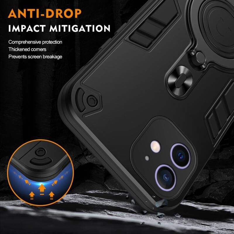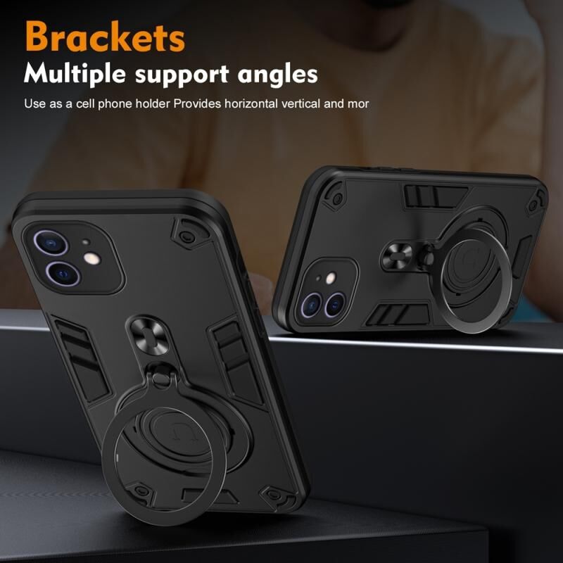 For iPhone 12 Metal Ring 360 Degree Rotating Holder PC Hybrid TPU Phone Case(Black)