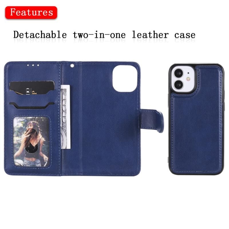 Θήκη 2 σε 1 για iPhone 12 mini, αποσπώμενη από δέρμα PU με μονόχρωμο χρώμα, με θήκες για κάρτες, μαγνητική βάση, κορνίζα φωτογραφιών, πορτοφόλι & λουρί (Μαύρο)