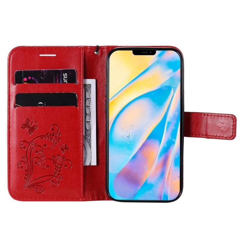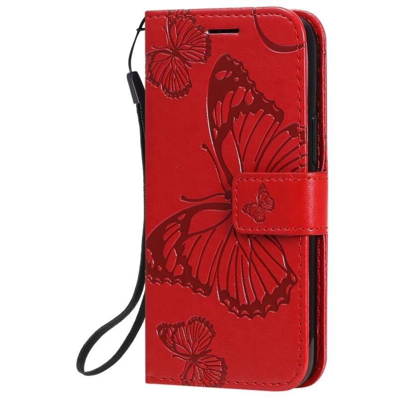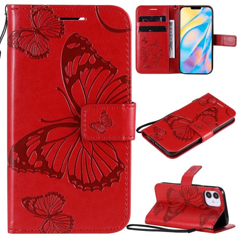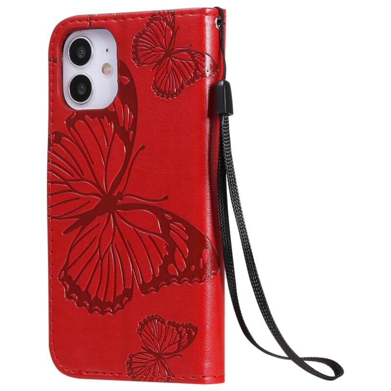 Θήκη δέρματος οριζόντιας αναδίπλωσης για iPhone 12 mini με ανάγλυφο σχέδιο 3D πεταλούδας, με βάση, θήκη καρτών, πορτοφόλι και λουρί (Μπλε)