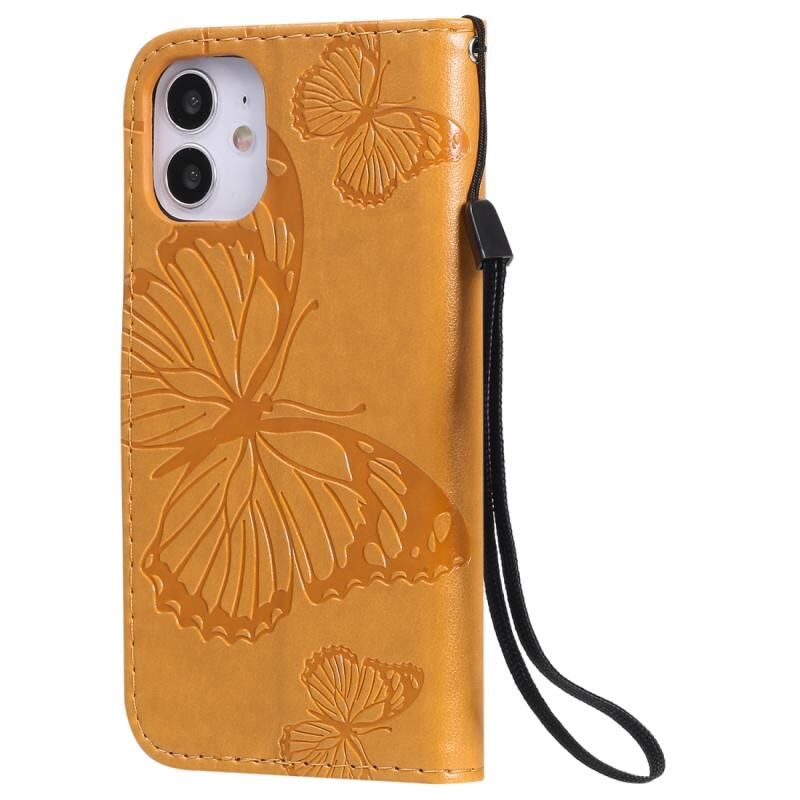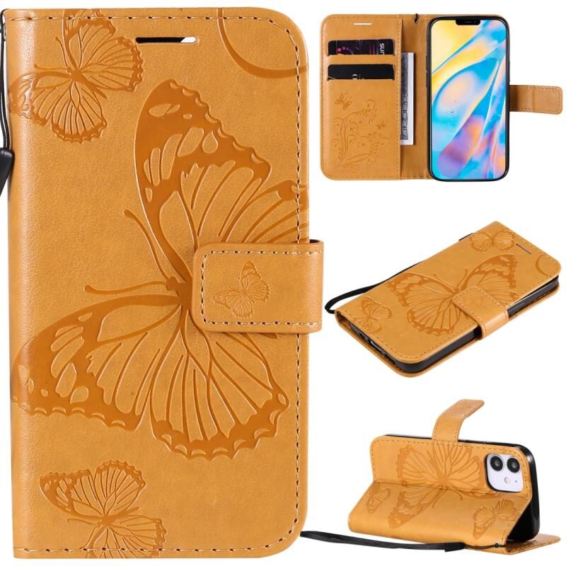 Θήκη δέρματος οριζόντιας αναδίπλωσης για iPhone 12 mini με ανάγλυφο σχέδιο 3D πεταλούδας, με βάση, θήκη καρτών, πορτοφόλι και λουρί (Μπλε)