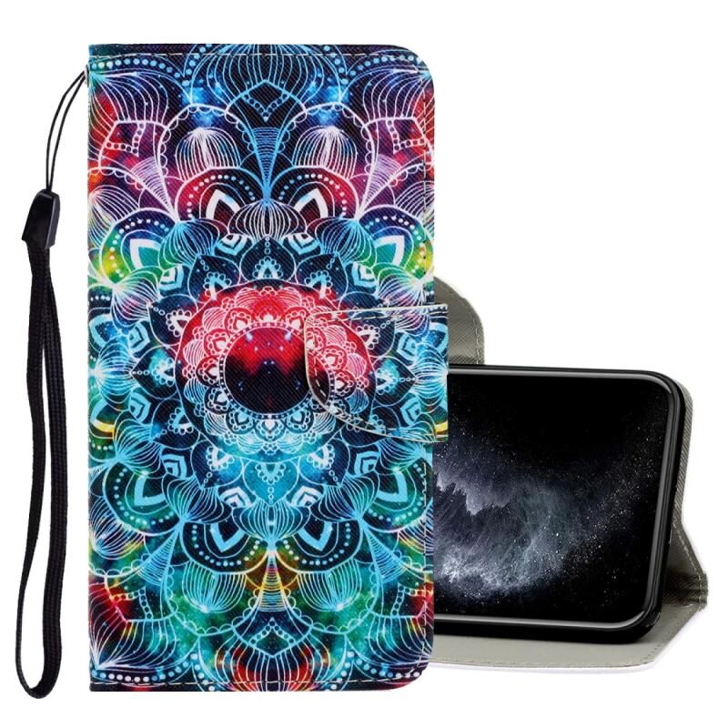 Θήκη για iPhone 12 mini 3D με έγχρωμο σχέδιο, οριζόντια αναδίπλωση από δερματίνη PU με βάση & υποδοχές καρτών & πορτοφόλι (Mandala)
