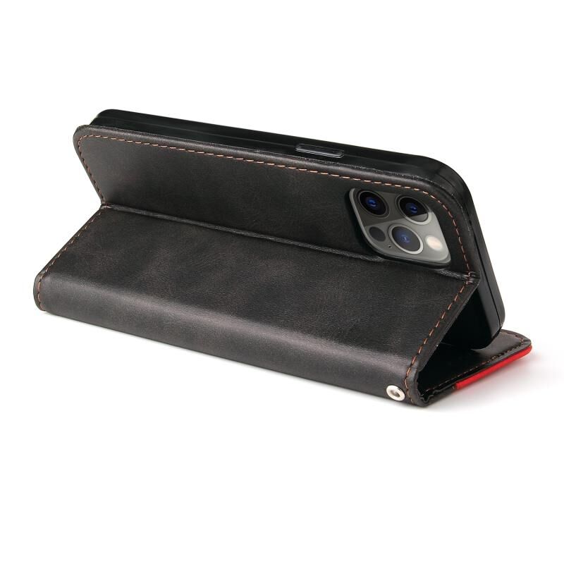 Θήκη για iPhone 12 mini, επαγγελματική με ραφές, πολύχρωμη, οριζόντια, από δερματίνη PU με βάση & θήκες για κάρτες & κορνίζα φωτογραφίας (Κόκκινη)