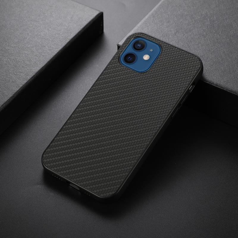 For iPhone 12 mini Carbon Fiber Skin PU + PC + TPU Shockprof Protective Case (Black)