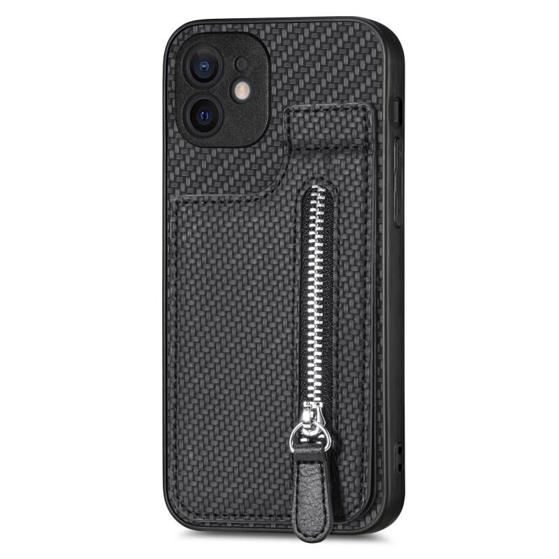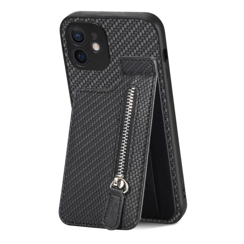 For iPhone 12 mini Carbon Fiber Vertical Flip Zipper Phone Case(Black)