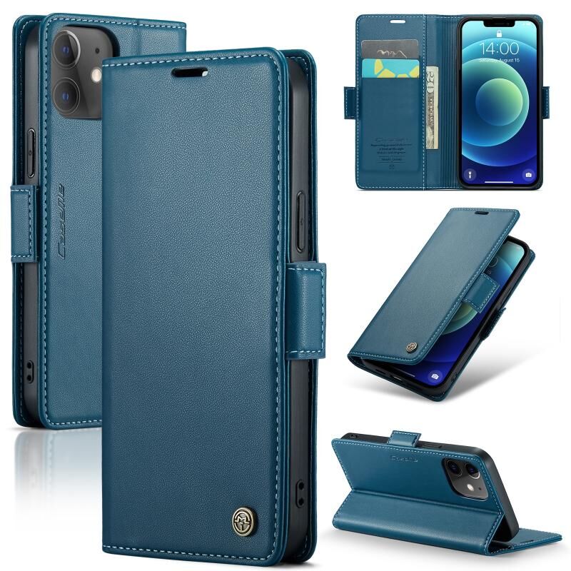 For iPhone 12 mini CaseMe 023 Butterfly Buckle Litchi Texture RFID Anti-theft Leather Phone Case(Blue) (CaseMe)