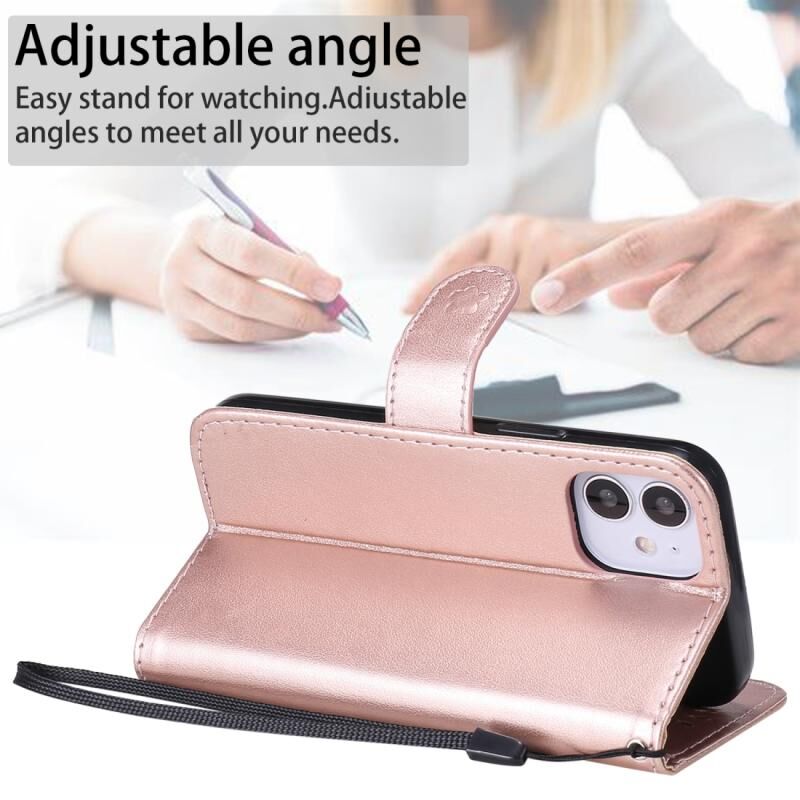 For iPhone 12 mini Cat Bee Embossing Pattern Shockproof Horizontal Flip Leather Case with Holder & Card Slots & Wallet(Rose Gold)