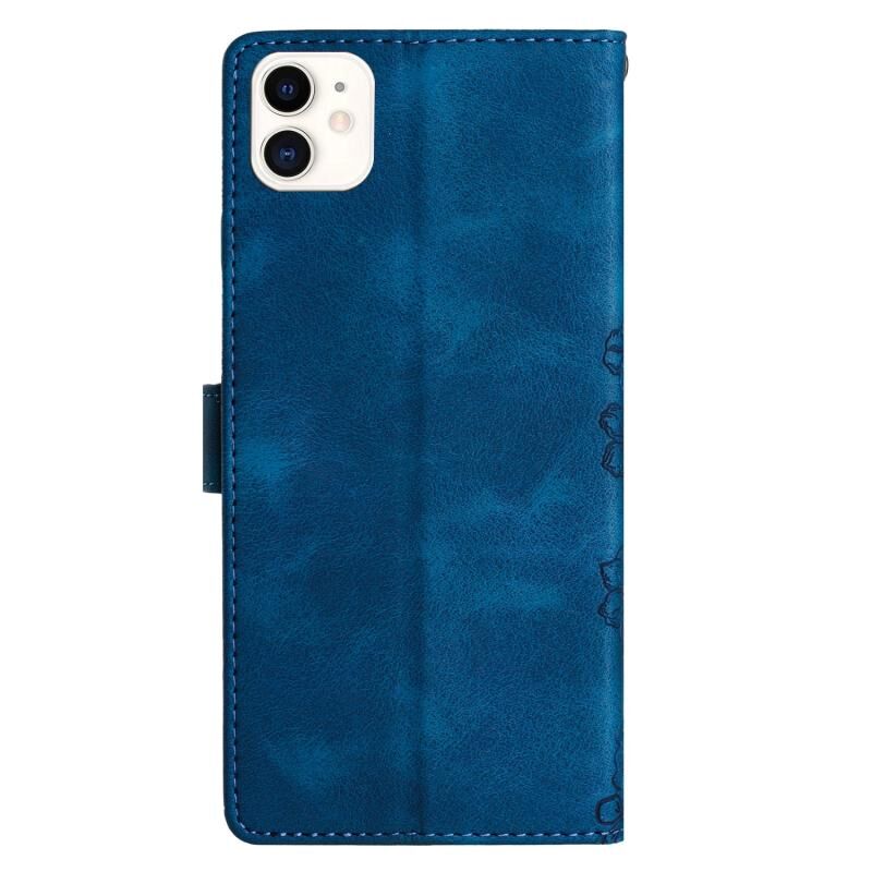 For iPhone 12 mini Cherry Blossom Butterfly Skin Feel Embossed PU Phone Case(Blue)
