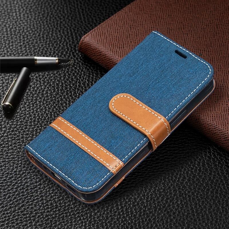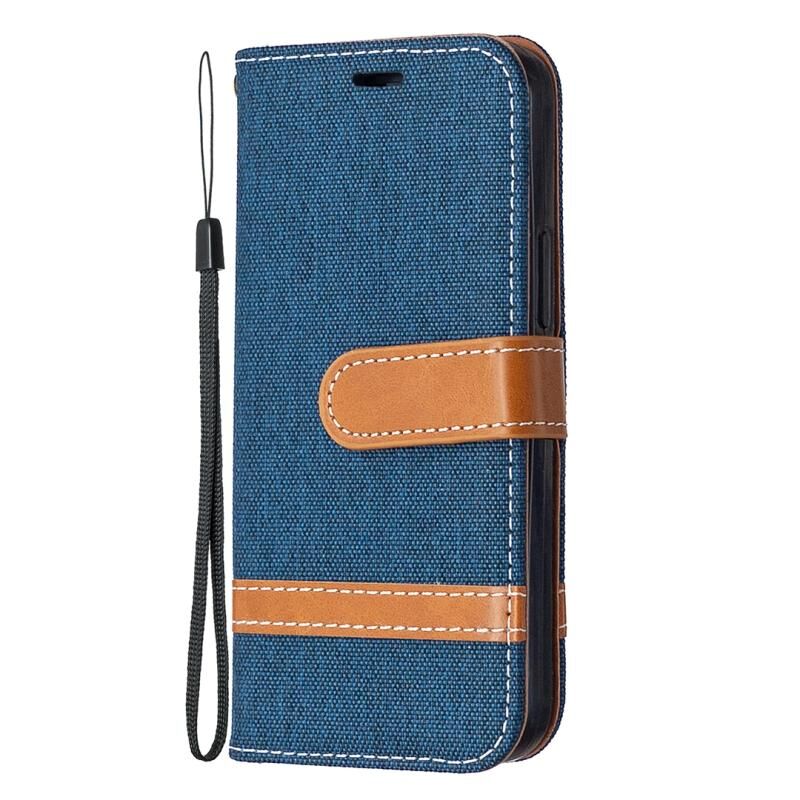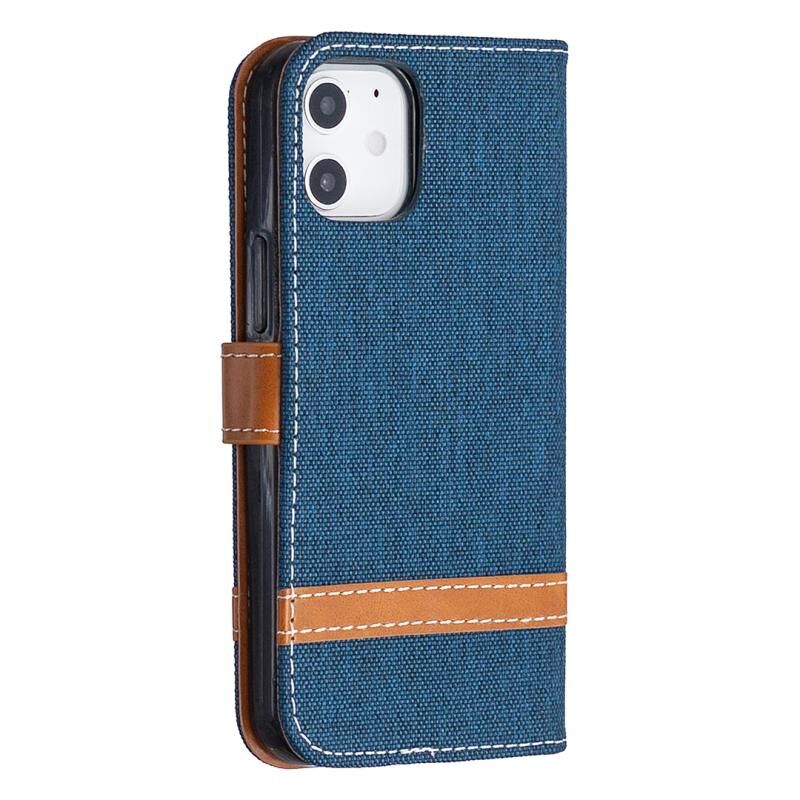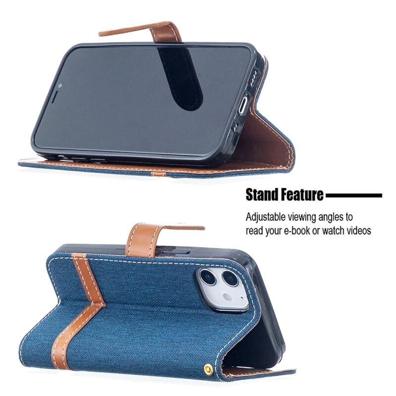 Θήκη για iPhone 12 mini με υφή τζιν, οριζόντια, αναδιπλούμενη από δέρμα, με βάση στήριξης, θήκες για κάρτες, πορτοφόλι & λουρί (Γκρι)