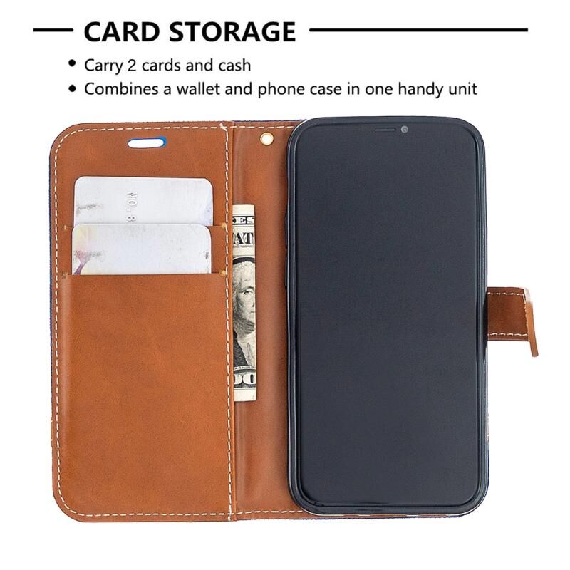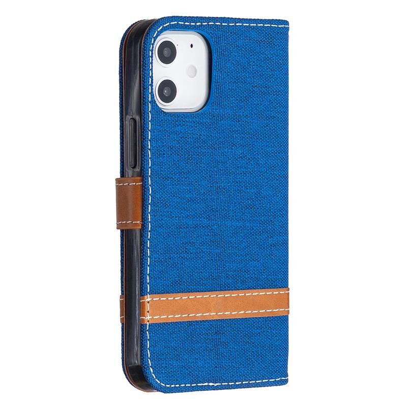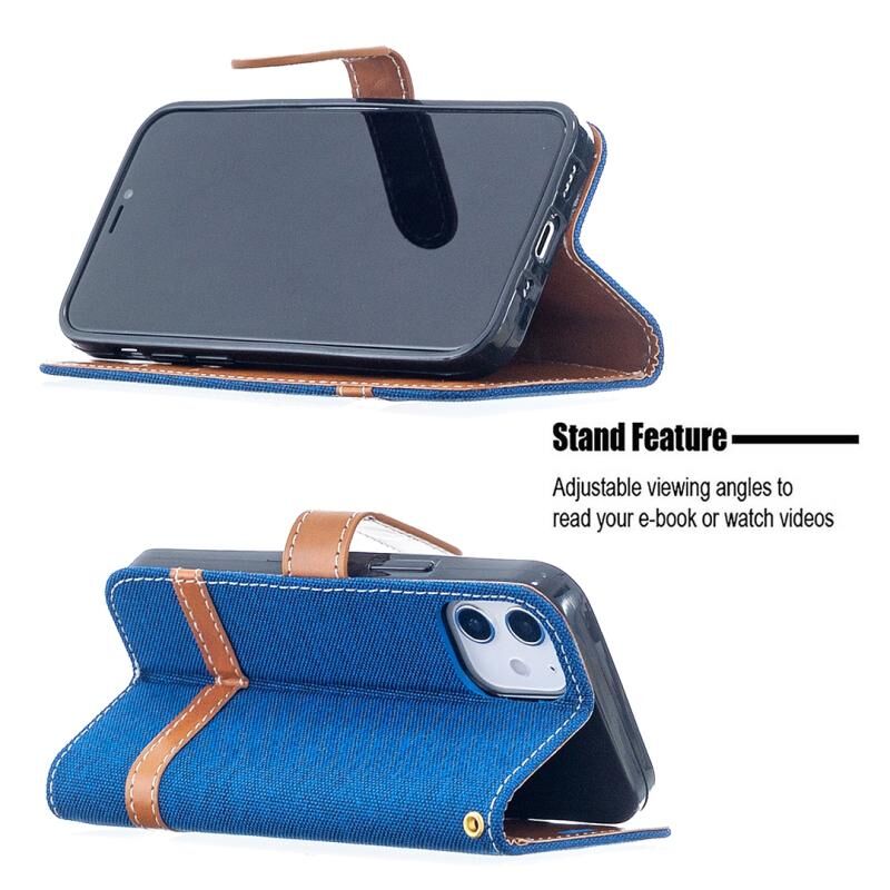 Θήκη για iPhone 12 mini με υφή τζιν, οριζόντια, αναδιπλούμενη από δέρμα, με βάση στήριξης, θήκες για κάρτες, πορτοφόλι & λουρί (Γκρι)
