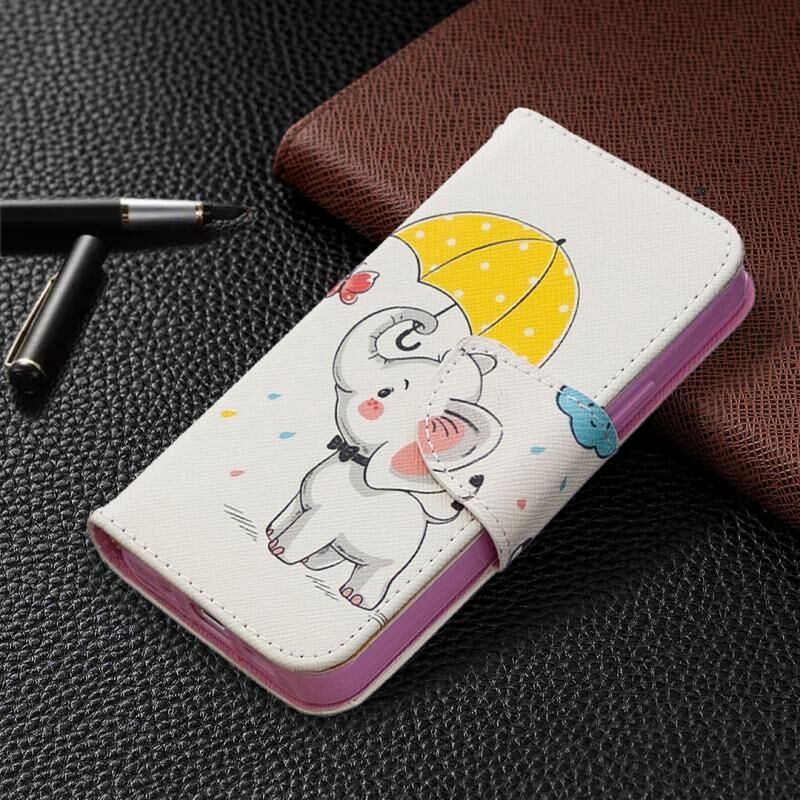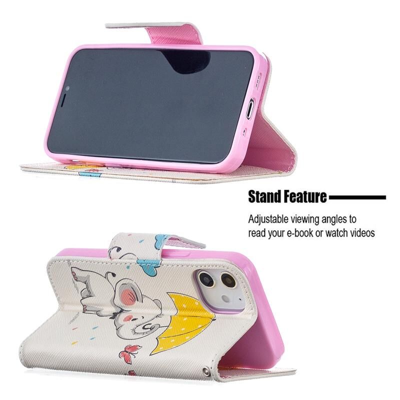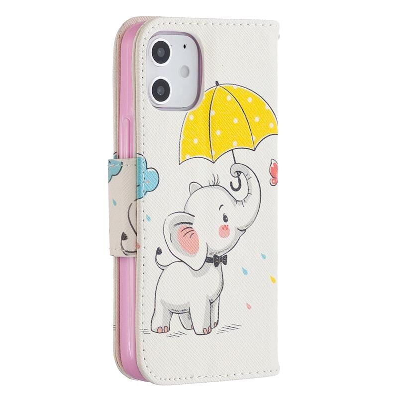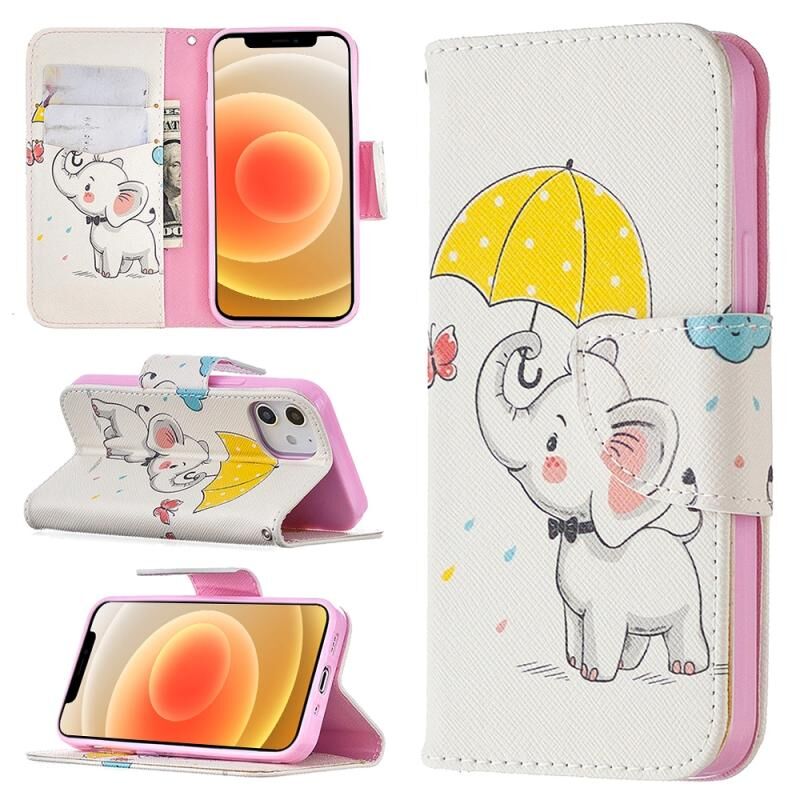 Θήκη δέρματος οριζόντιας αναδίπλωσης με σχέδιο έγχρωμης ζωγραφικής για iPhone 12 mini με βάση & υποδοχές καρτών & πορτοφόλι (Ελέφαντας)