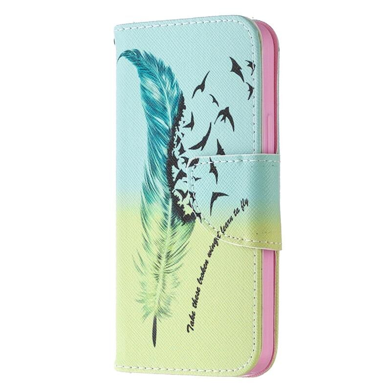 Θήκη δέρματος οριζόντιας αναδίπλωσης με σχέδιο πολύχρωμης ζωγραφικής για iPhone 12 mini με βάση & υποδοχές καρτών & πορτοφόλι (Φτερό)