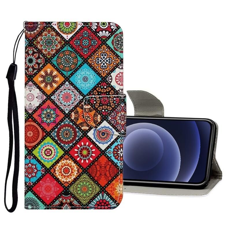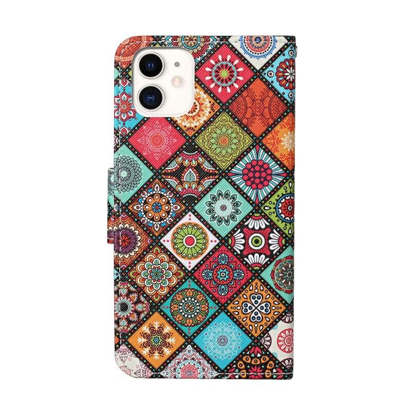 Θήκη δέρματος οριζόντιας αναδίπλωσης με σχέδιο έγχρωμης ζωγραφικής για iPhone 12 mini με βάση & υποδοχές καρτών & πορτοφόλι (Κόκκινο)