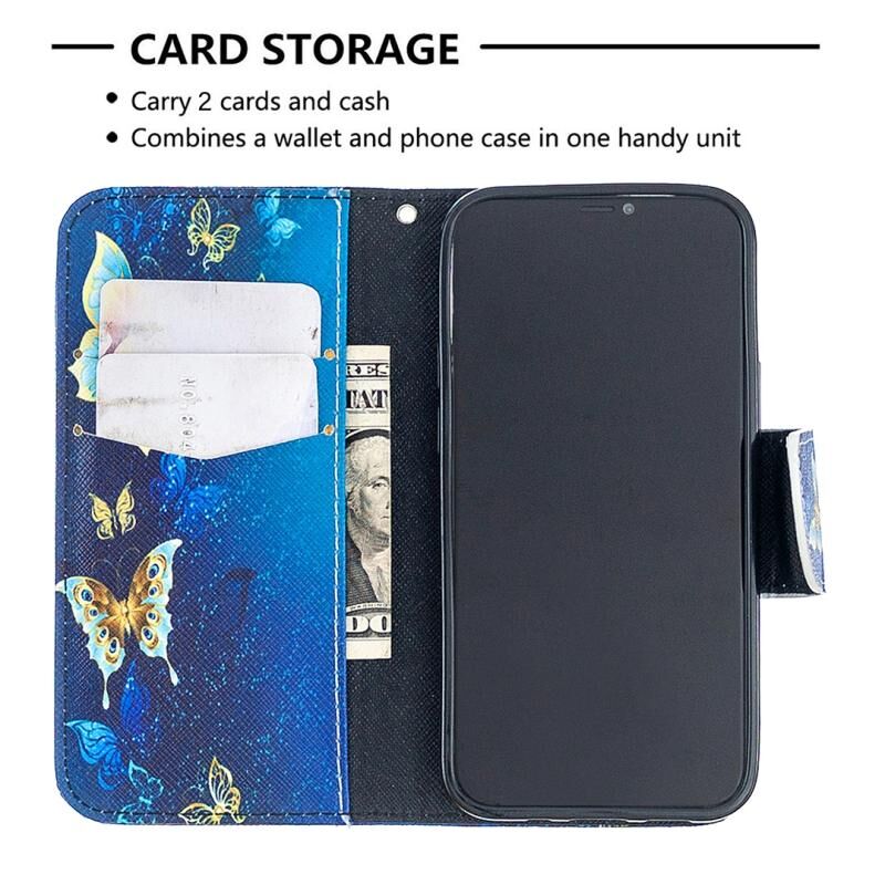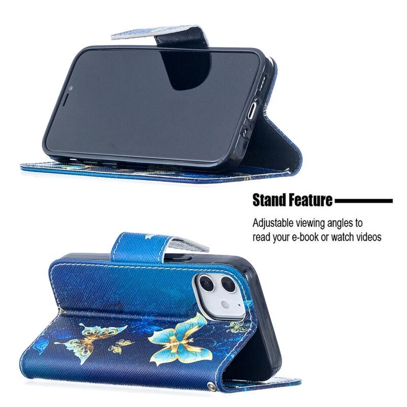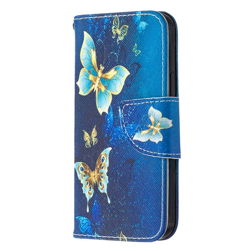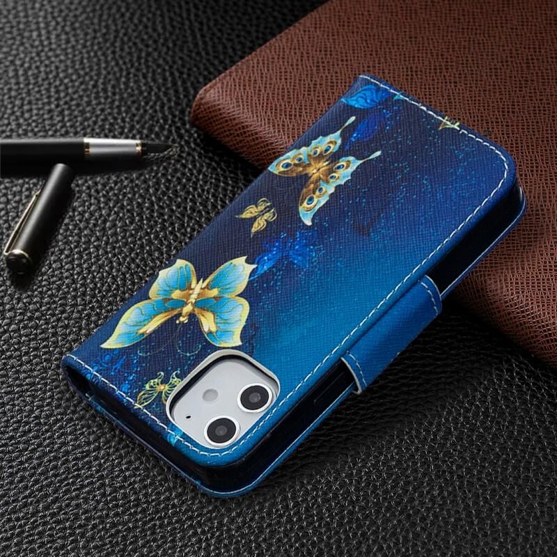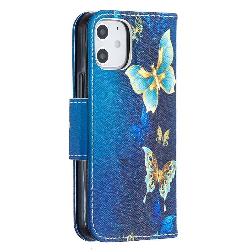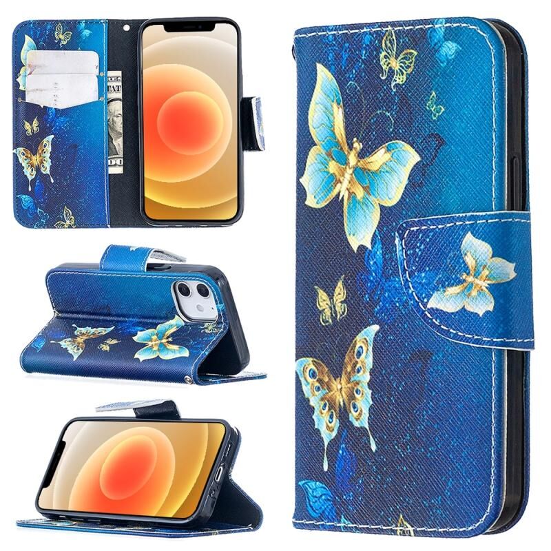 Θήκη δέρματος οριζόντιας αναδίπλωσης με σχέδιο πολύχρωμης ζωγραφικής για iPhone 12 mini με βάση & υποδοχές καρτών & πορτοφόλι (Χρυσή Πεταλούδα)