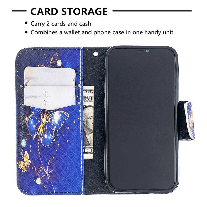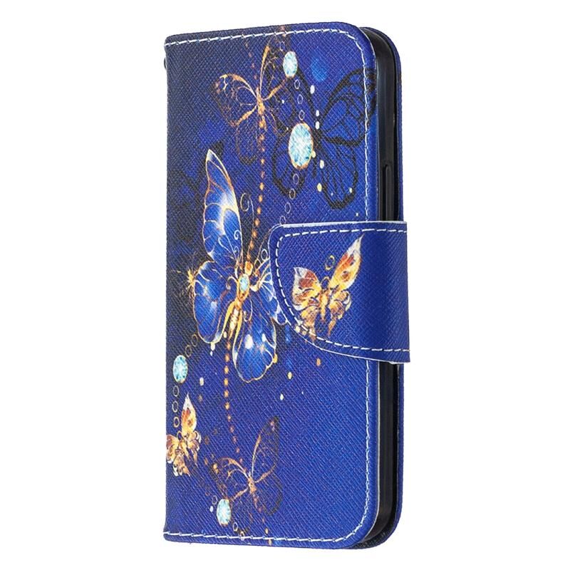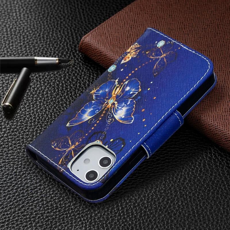 Θήκη δέρματος οριζόντιας αναδίπλωσης με σχέδιο πολύχρωμης ζωγραφικής για iPhone 12 mini με βάση & υποδοχές καρτών & πορτοφόλι (Μωβ Πεταλούδα)