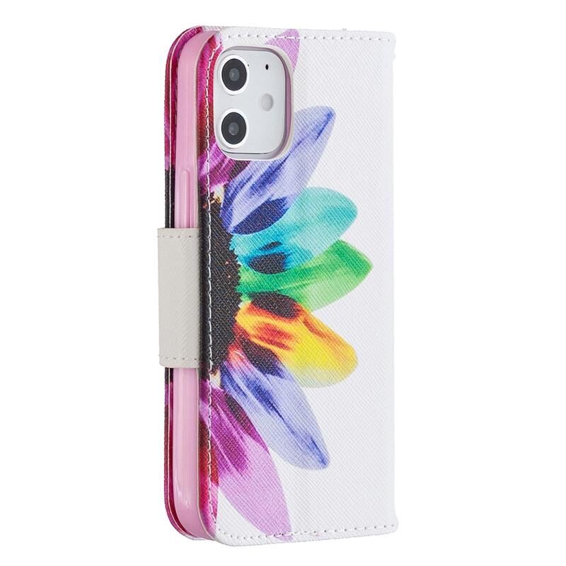 For iPhone 12 mini Colored Drawing Pattern Horizontal Flip Leather Case with Holder & Card Slots & Wallet(Sunflower)