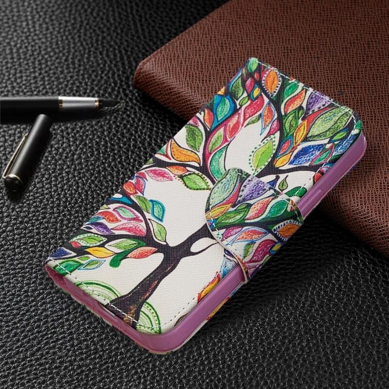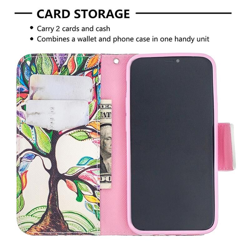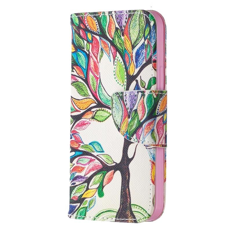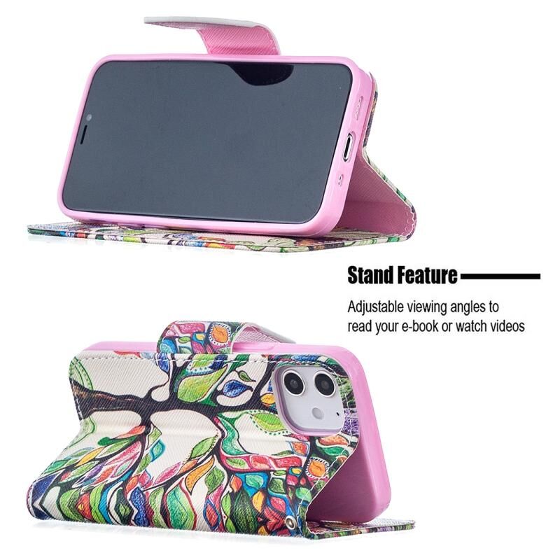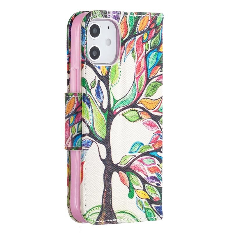 Θήκη δέρματος οριζόντιας αναδίπλωσης με σχέδιο έγχρωμης ζωγραφικής για iPhone 12 mini με βάση στήριξης & υποδοχές καρτών & πορτοφόλι (Δέντρο της Ζωής)