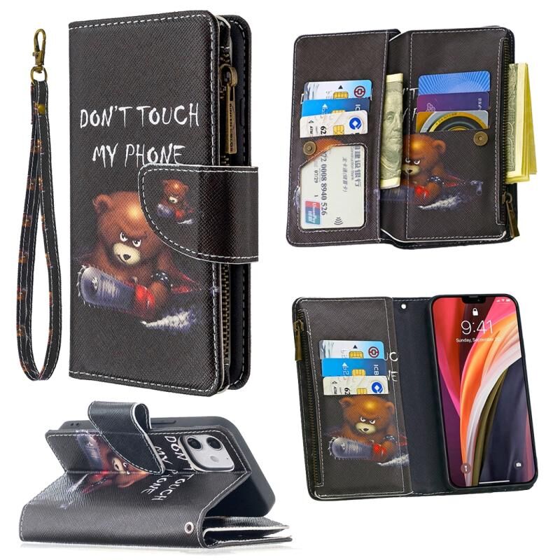 For iPhone 12 mini Colored Drawing Pattern Zipper Horizontal Flip Leather Case with Holder & Card Slots & Wallet(Bear)