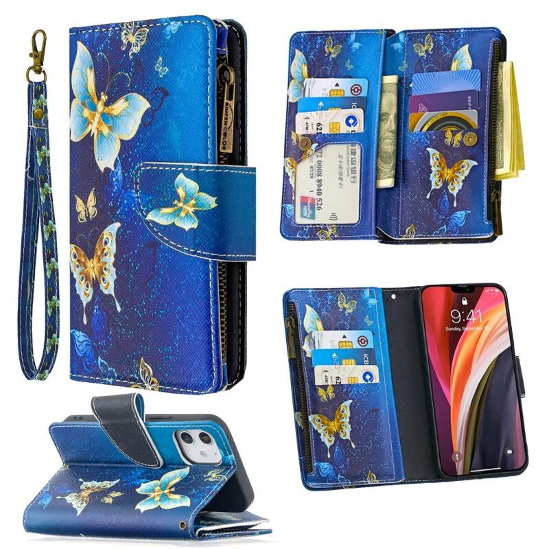 For iPhone 12 mini Colored Drawing Pattern Zipper Horizontal Flip Leather Case with Holder & Card Slots & Wallet(Gold Butterfly)
