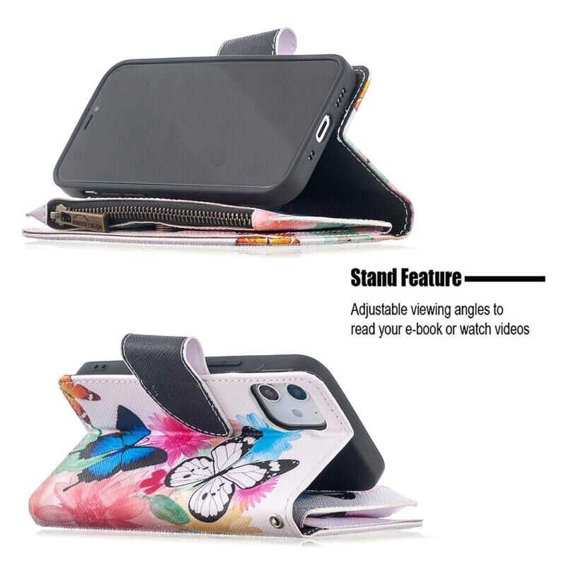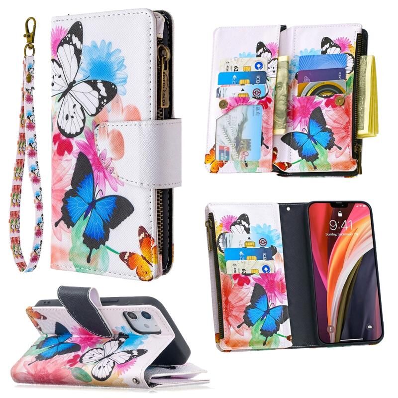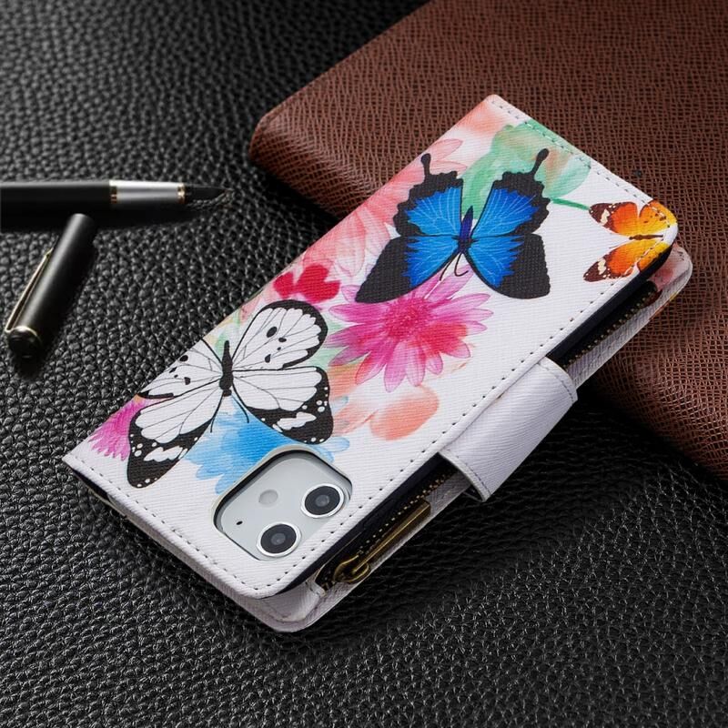 For iPhone 12 mini Colored Drawing Pattern Zipper Horizontal Flip Leather Case with Holder & Card Slots & Wallet(Two Butterflies)