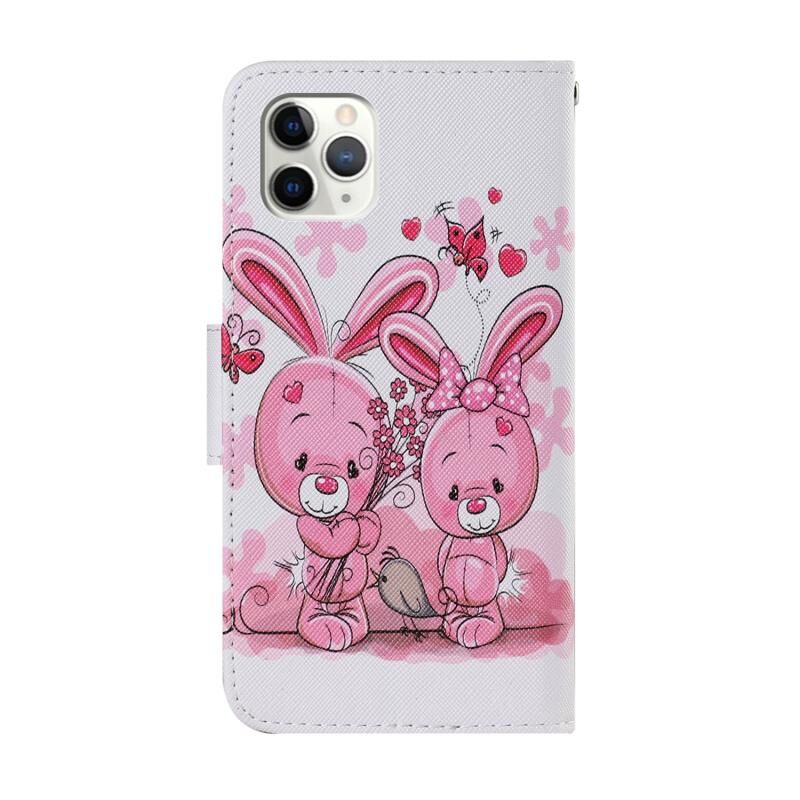 Θήκη για iPhone 12 mini με πολύχρωμο σχέδιο ζωγραφικής, οριζόντια αναδιπλούμενη από δερματίνη PU με βάση στήριξης & θήκες για κάρτες & πορτοφόλι & κορδόνι (Χαριτωμένο Κουνελάκι)