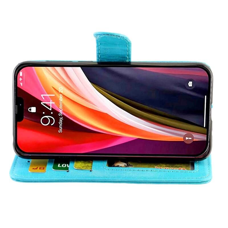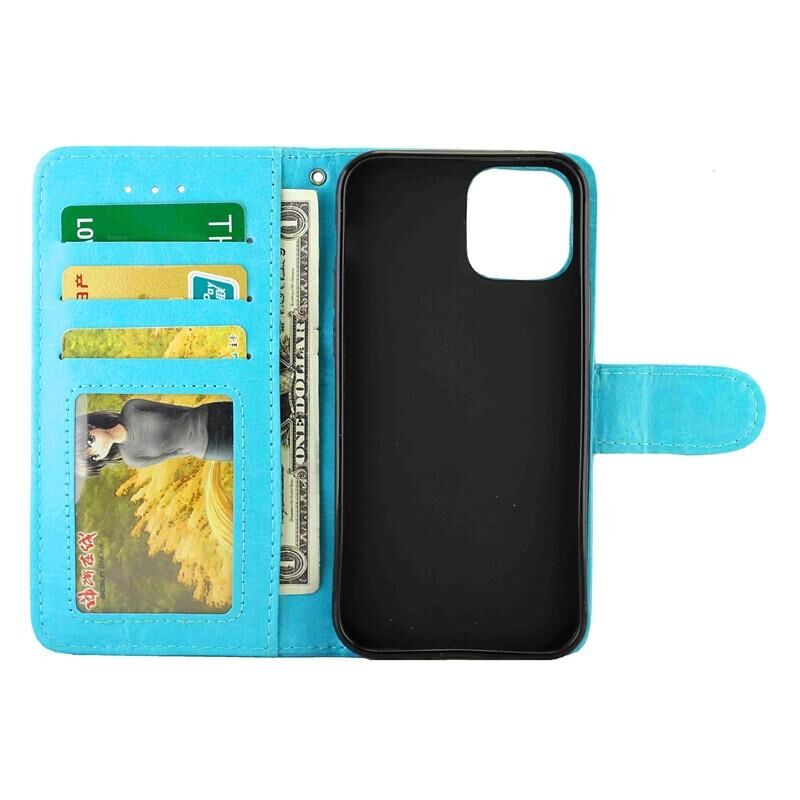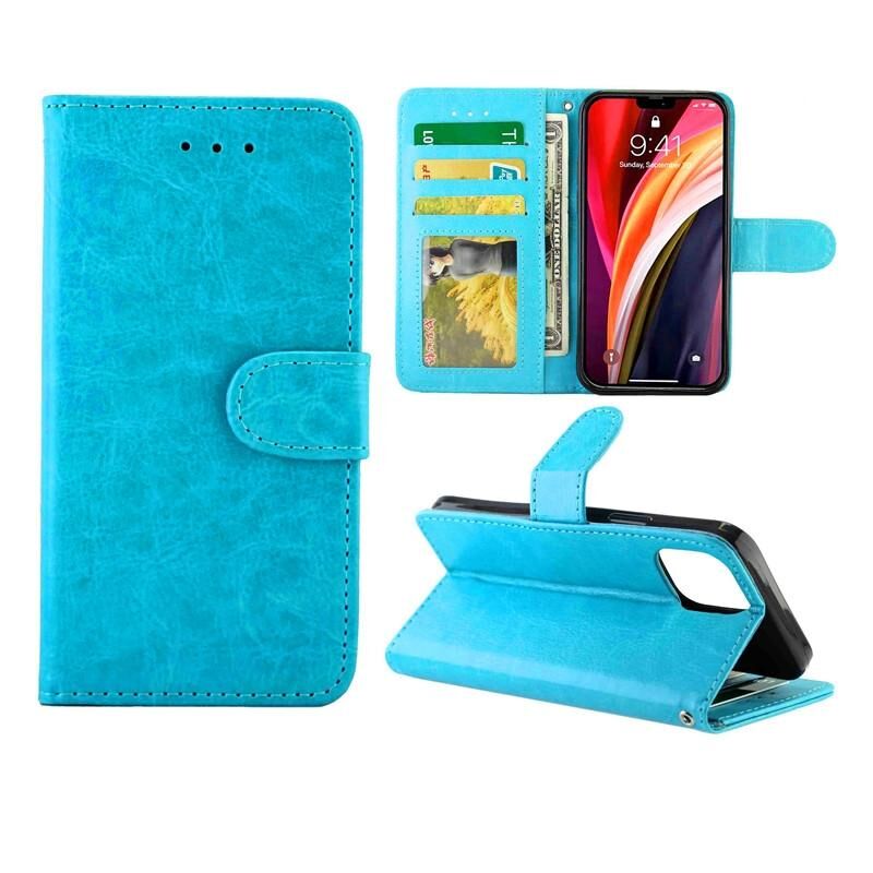 Θήκη προστασίας οριζόντιας αναδίπλωσης από δέρμα Crazy Horse με υφή για iPhone 12 mini με βάση στήριξης & θήκες καρτών & πορτοφόλι & κορνίζα φωτογραφιών (baby Blue)