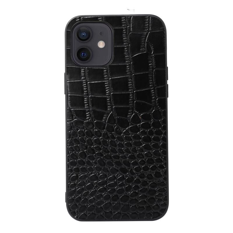 Θήκη για iPhone 12 mini από γνήσιο δέρμα μοσχαριού με επικάλυψη κροκόδειλου (Μαύρο)