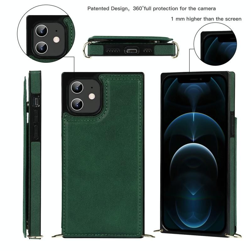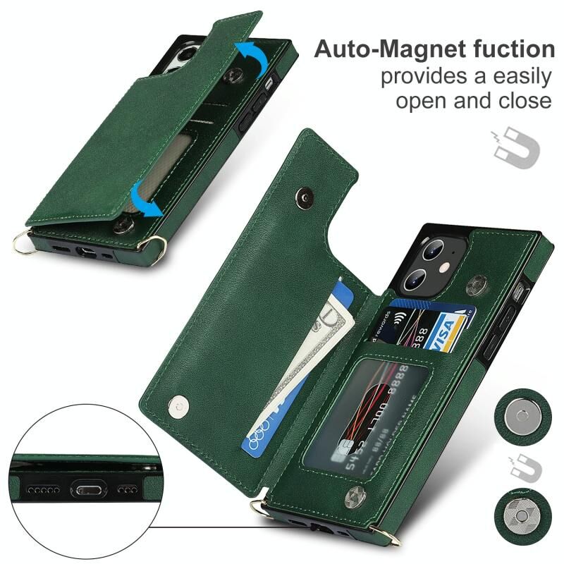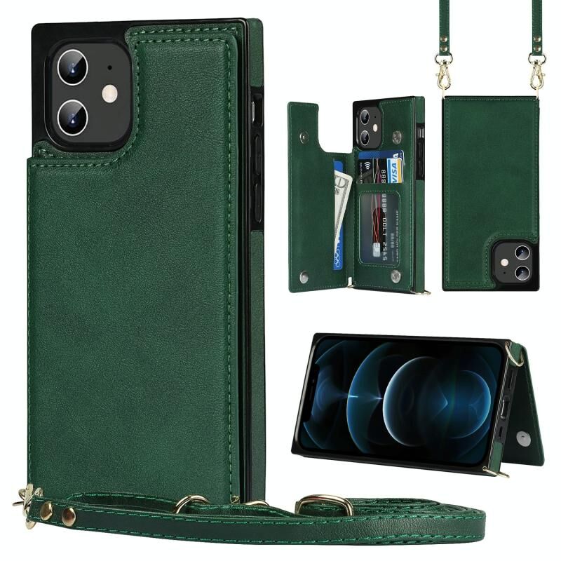 For iPhone 12 mini Cross-body Square Double Buckle Flip Card Bag TPU+PU Case with Card Slots & Wallet & Photo & Strap (Green)