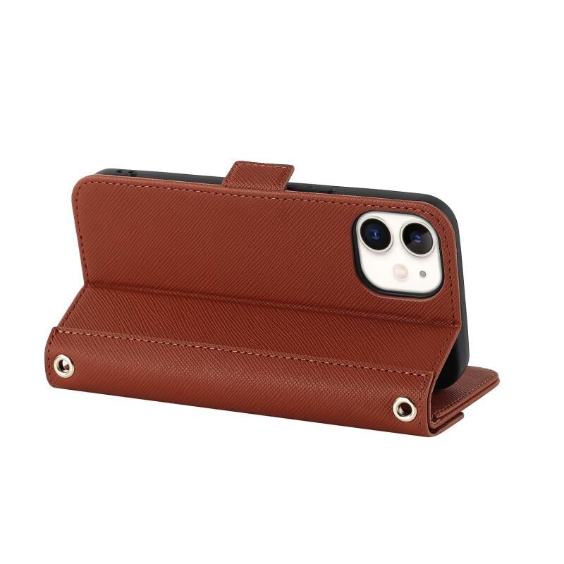 Θήκη τηλεφώνου από δέρμα με κορδόνι σταυρωτής υφής για iPhone 12 mini (Μαύρο)