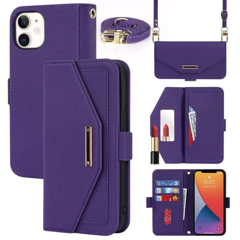 Θήκη τηλεφώνου από δέρμα με κορδόνι σταυρωτής υφής για iPhone 12 mini (Μαύρο)