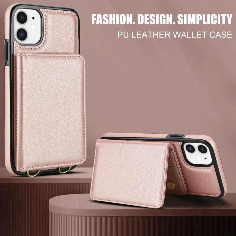 For iPhone 12 mini Crossbody Dual-buckle Wallet RFID Back Leather Phone Case(Rose Gold)