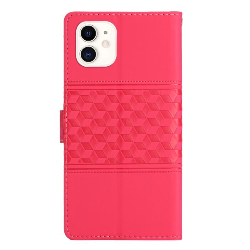 Θήκη τηλεφώνου από δέρμα με ανάγλυφο σχέδιο διαμαντιών για iPhone 12 mini με κορδόνι (Καφέ)