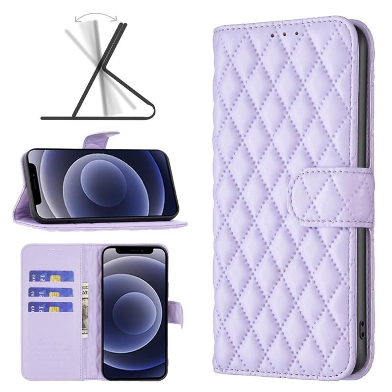 Θήκη για iPhone 12 mini, Δερμάτινη θήκη τύπου πορτοφολιού με σχέδιο διαμαντόπλεγμα (Λευκό)