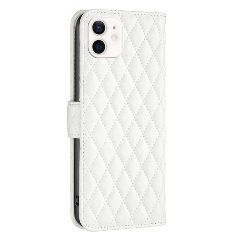 Θήκη για iPhone 12 mini, Δερμάτινη θήκη τύπου πορτοφολιού με σχέδιο διαμαντόπλεγμα (Λευκό)