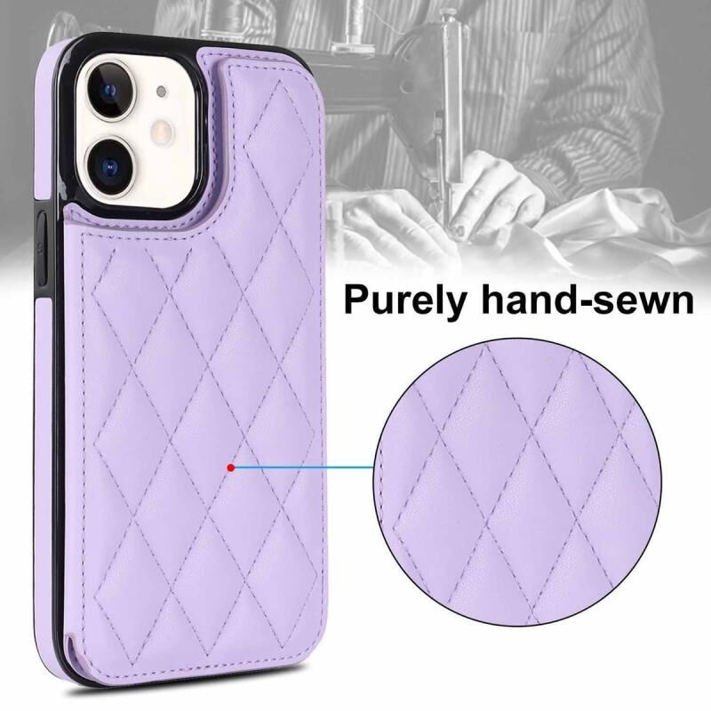 For iPhone 12 mini Double Buckle Rhombic PU Leather Phone Case(Purple)
