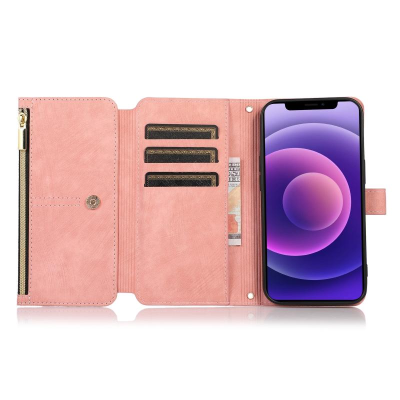 For iPhone 12 mini Dream 9-Card Wallet Zipper Bag Leather Phone Case(Pink)
