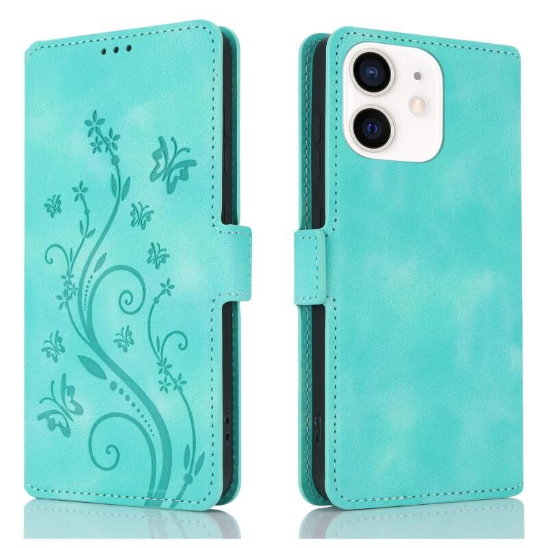 For iPhone 12 mini Dreamy Butterfly Love Flower Embossed Leather Phone Case(Green)