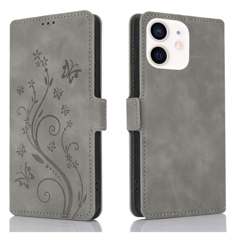 For iPhone 12 mini Dreamy Butterfly Love Flower Embossed Leather Phone Case(Grey)
