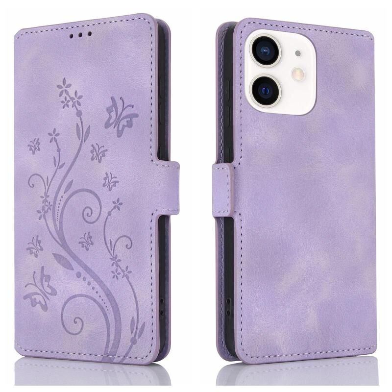 For iPhone 12 mini Dreamy Butterfly Love Flower Embossed Leather Phone Case(Purple)