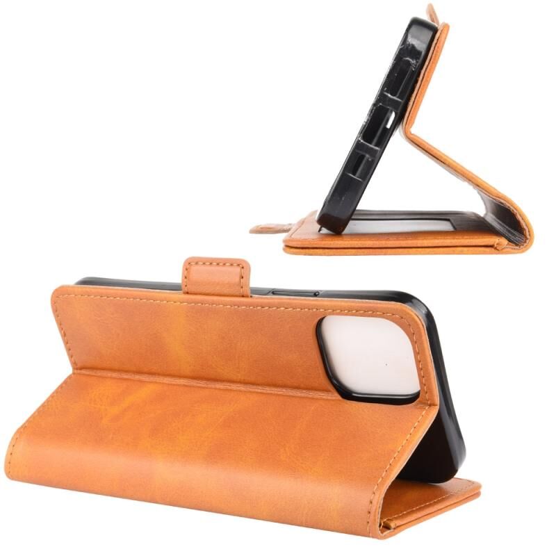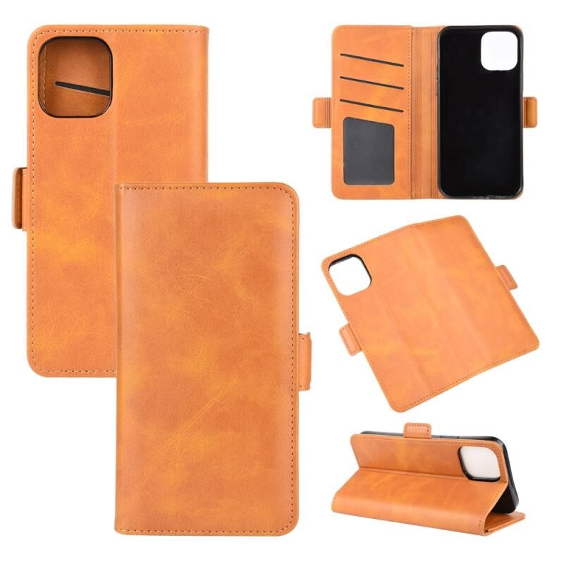Θήκη δέρματος οριζόντιας αναδίπλωσης με μαγνητικό κούμπωμα διπλής όψης για iPhone 12 mini με βάση & υποδοχές καρτών & πορτοφόλι (Μαύρο)