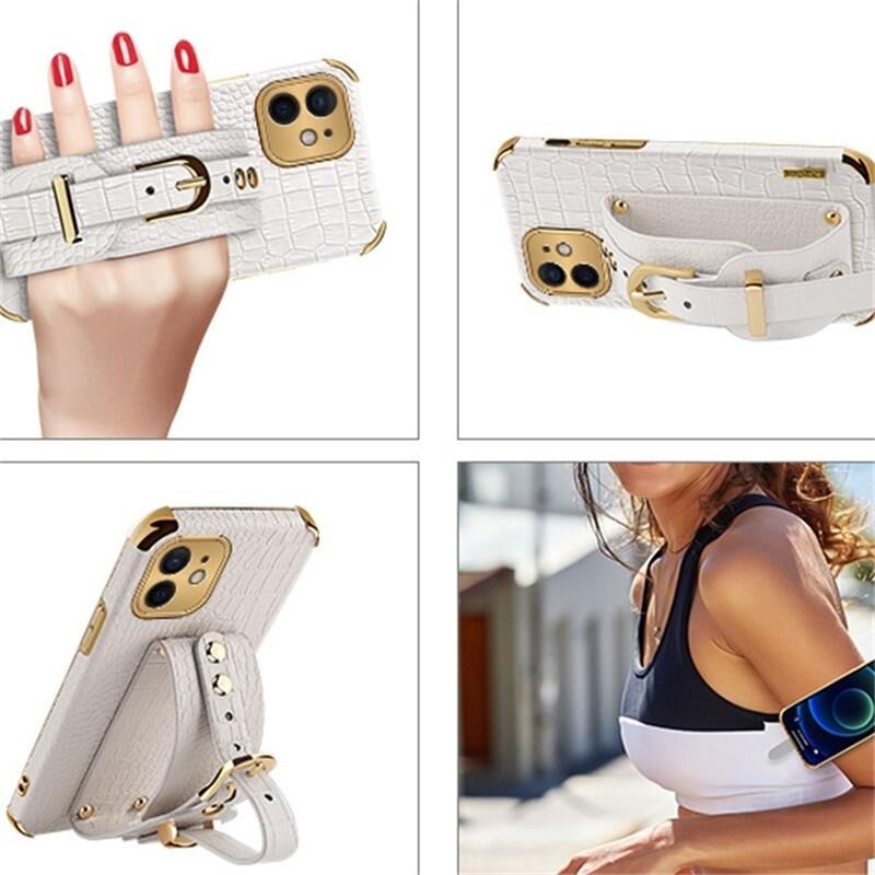 For iPhone 12 mini Electroplated TPU Crocodile Pattern Leather Case with Wrist Strap (Black)