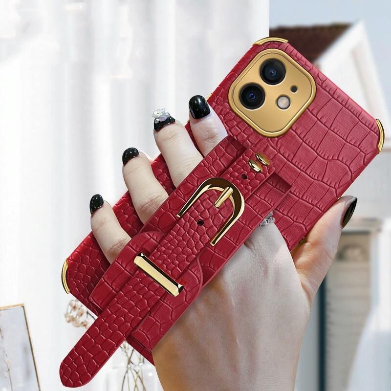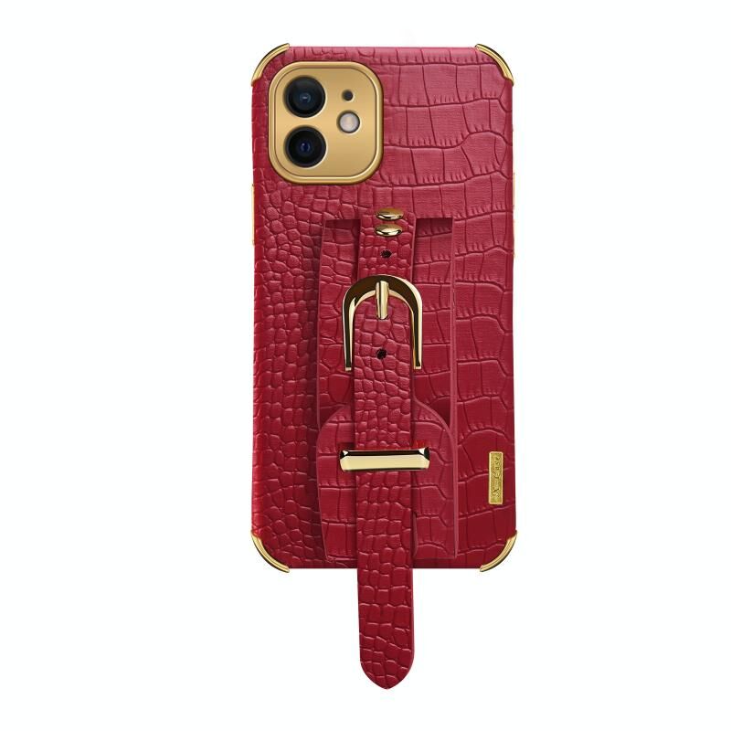 For iPhone 12 mini Electroplated TPU Crocodile Pattern Leather Case with Wrist Strap (Red)