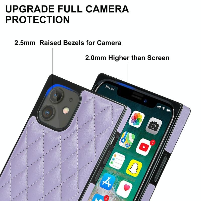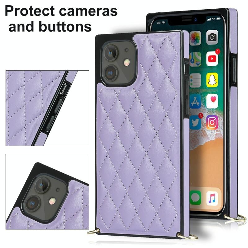 For iPhone 12 mini Elegant Rhombic Pattern Microfiber Leather +TPU Shockproof Case with Crossbody Strap Chain (Purple)