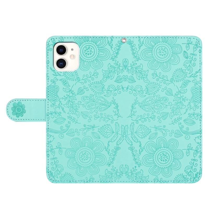 Θήκη τηλεφώνου δερμάτινη με ανάγλυφο floral σχέδιο για iPhone 12 mini (Ανοιχτό Πράσινο)