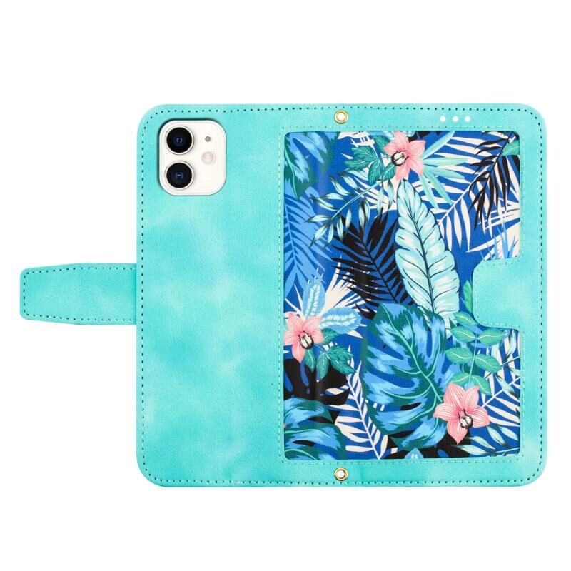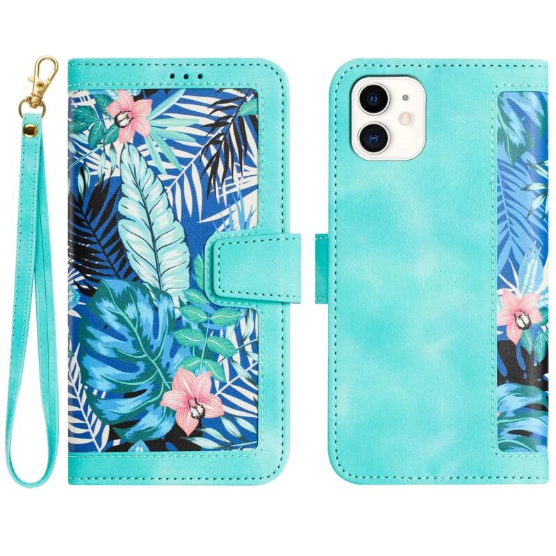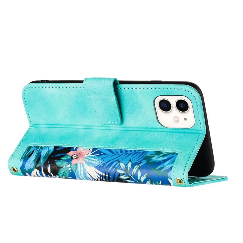 Θήκη τηλεφώνου από δέρμα με λουλουδάτο σχέδιο για iPhone 12 mini με κορδόνι (Πράσινο)