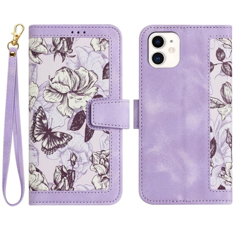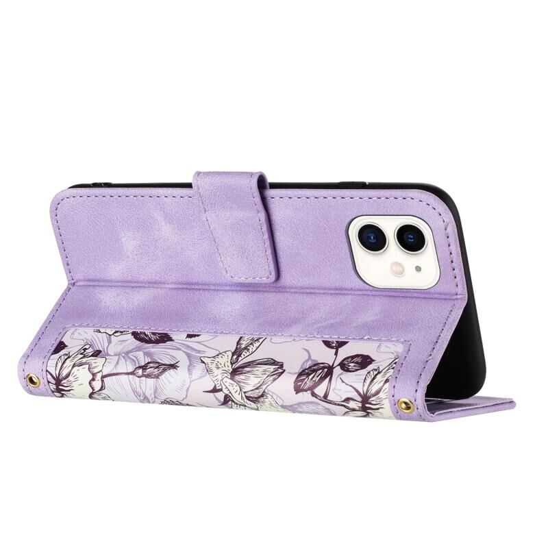 Θήκη τηλεφώνου από δέρμα με λουλουδάτο σχέδιο για iPhone 12 mini με κορδόνι (Πράσινο)