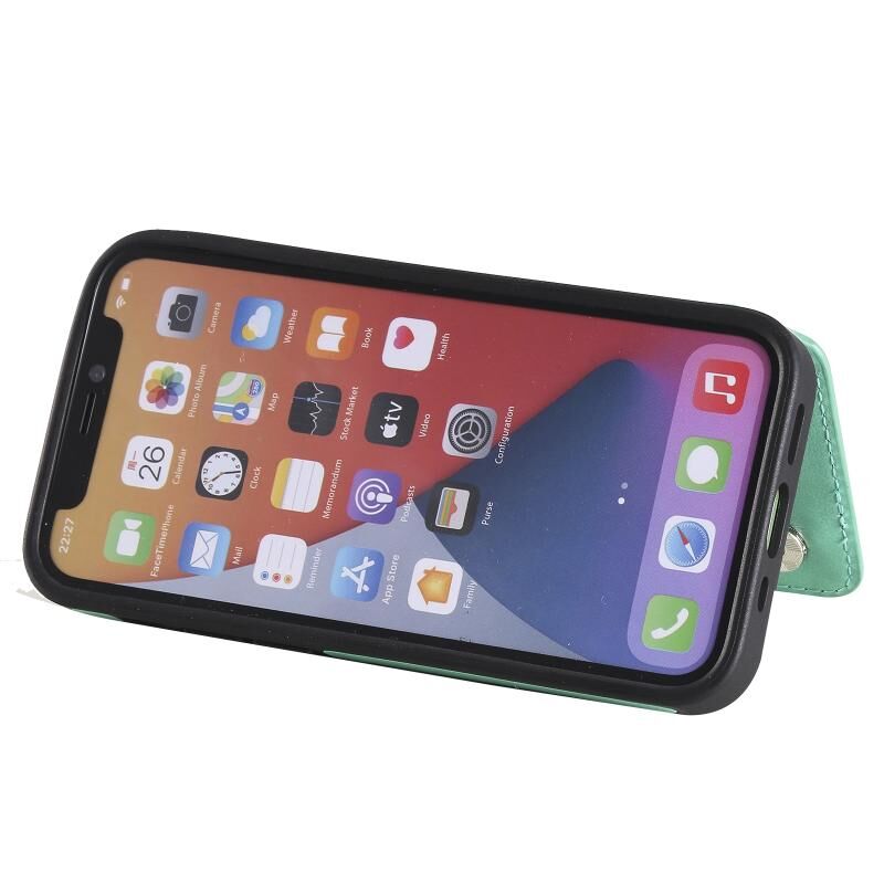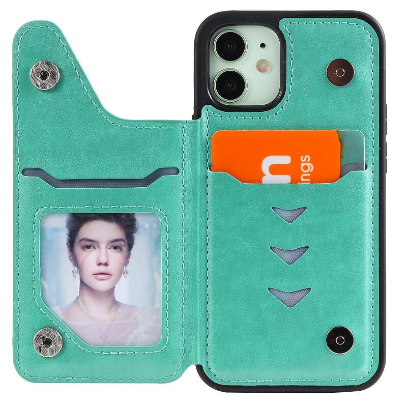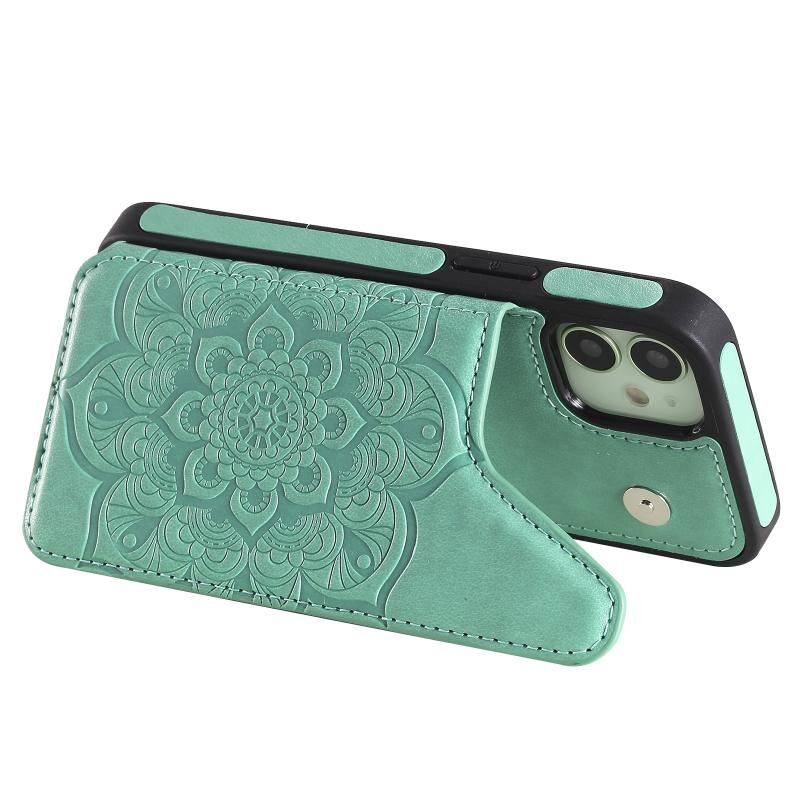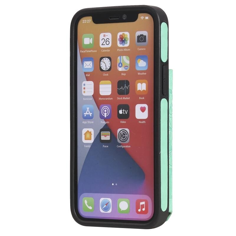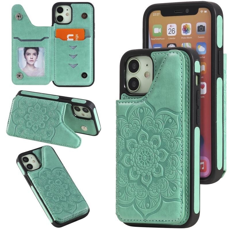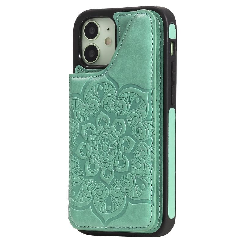 For iPhone 12 mini Flower Embossing Pattern Shockproof Protective Case with Holder & Card Slots & Photo Frame (Green)