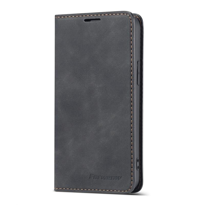Θήκη δέρματος οριζόντιας αναδίπλωσης με μαγνητικό κλείσιμο και λεπτή άκρη λαδιού σειράς Dream Forwenw για iPhone 12 mini με βάση, θήκη καρτών, κορνίζα φωτογραφιών & πορτοφόλι (Μαύρο) (Forwenw)