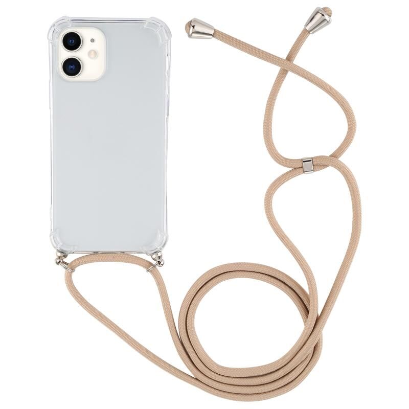 For iPhone 12 mini Four-Corner Shockproof Transparent TPU Case with Lanyard(Gold)