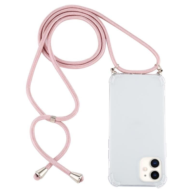 Θήκη για iPhone 12 mini, Διαφανής TPU ανθεκτική σε κρούσεις στις τέσσερις γωνίες με κορδόνι (Κόκκινη)